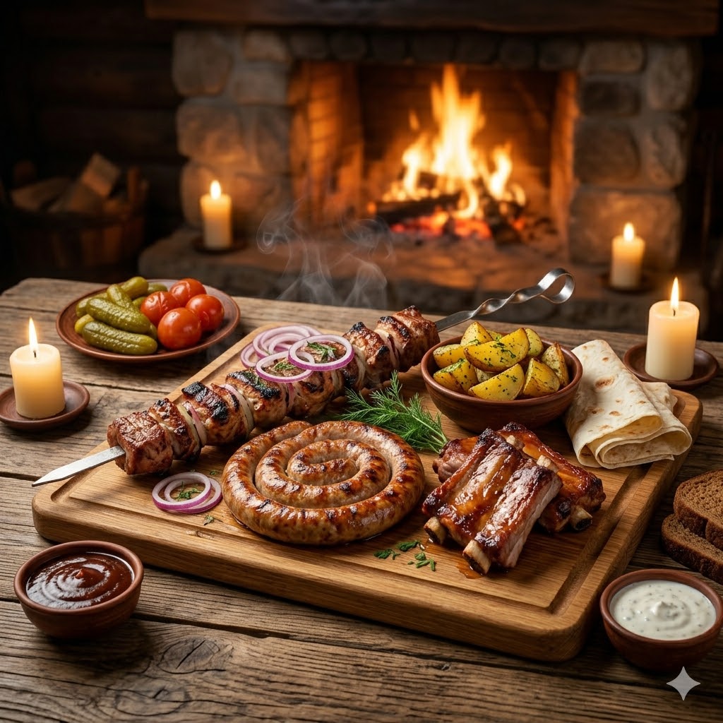 Ми зібрали у цьому наборі все, що асоціюється зі щедрим українським застіллям. Різні види м’яса на мангалі, фірмові ковбаски власного виробництва та правильні закуски — цей сет створений для того, щоб ніхто не пішов голодним.